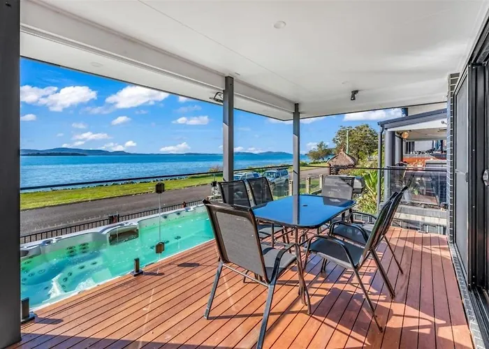 Peace In Paradise Near Nelson Bay- Waterviews, Spa, Adventures坐落在一个住宅区,距离提力加力居留地有1.2公里,设有野餐区 和跳水池. 这栋2间卧室别墅设有阳台,咖啡机/煮茶机 和卫星频道平板电视和设施齐全的厨房,让您倍感舒适.